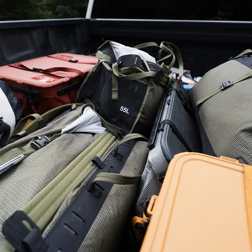 The Duffel Box is fully compatible with the entire RUX ecosystem from Packing Cubes and Organizer Panels to Utility Straps, Cooler Cubes, and even your 70L or 40L Gear Boxes.